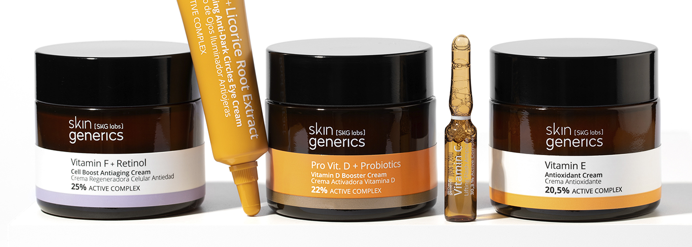 Especializada en texturas agradables y que intensifican la absorción cutánea de sus ingredientes activos incrementando su efectividad en la piel. Skin Generics aúna la imagen y valores de una marca nicho con la efectividad de los productos de boticario.